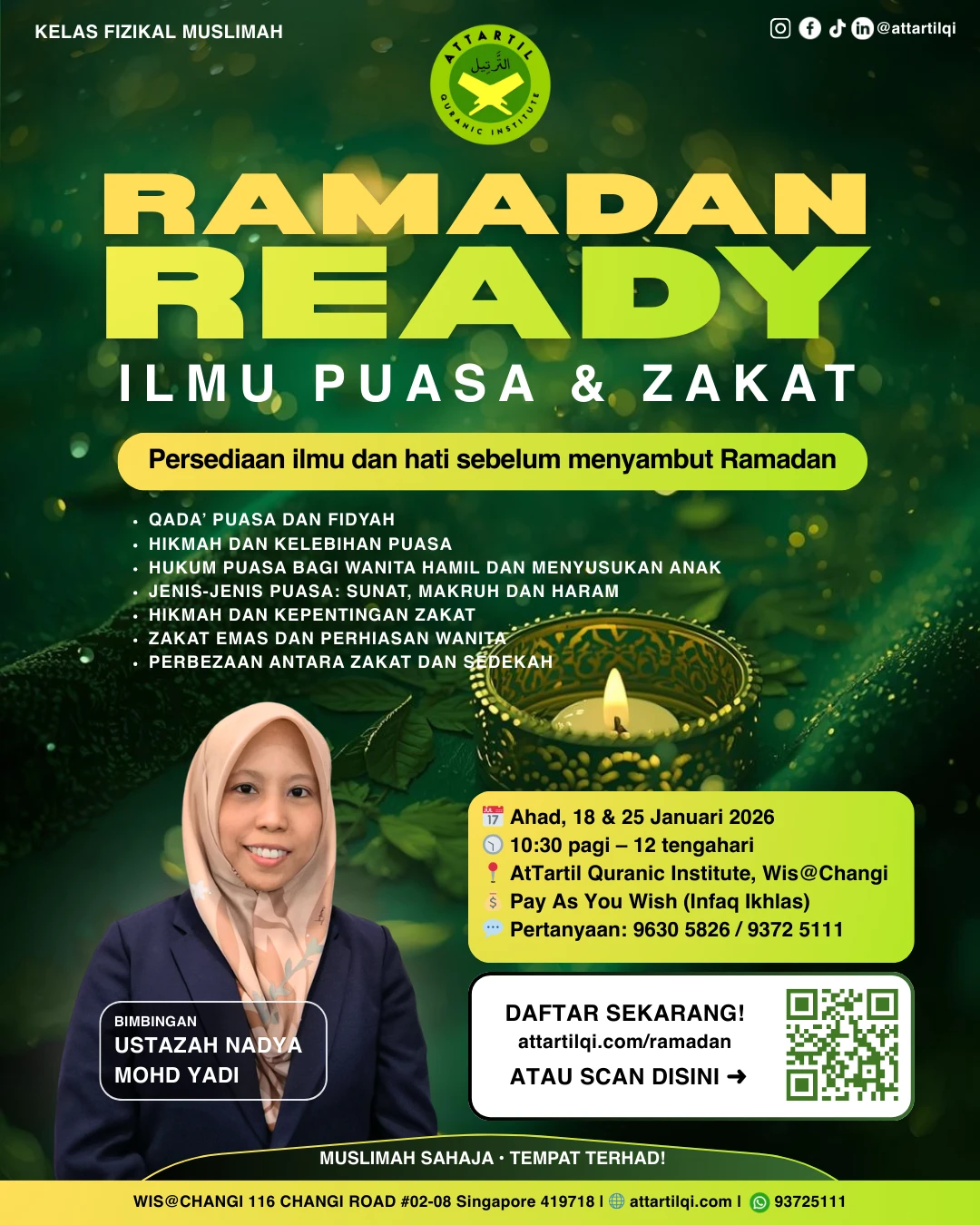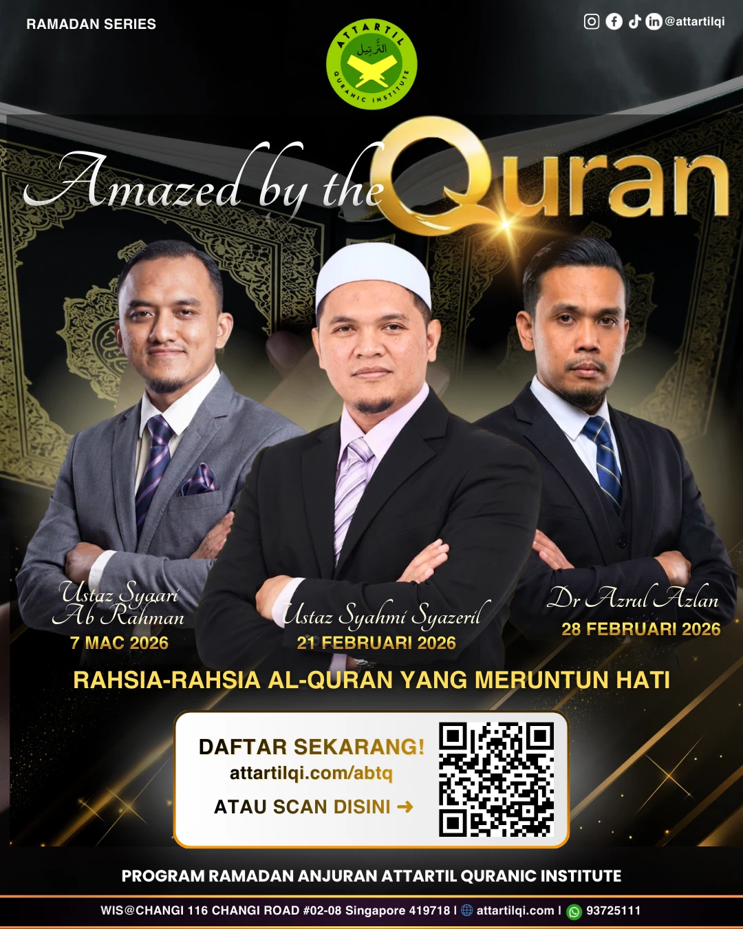 Attartil CS was founded by Ustaz Zulkiflee Bin Bachik in Singapore in 2007 ,it is also one of the branch network of Al Tartil, Centre, Machang, Kelantan, Malaysia. With our mission of ” Eradicating Al Qurán Illiteracy as to understand the AlQur’an” we envision every Muslims can read, understand and practice the contents of holy Quran. Attartil Cs also aspire to groom non-readers of AlQurán to be leaners and teachers of AlQurán.